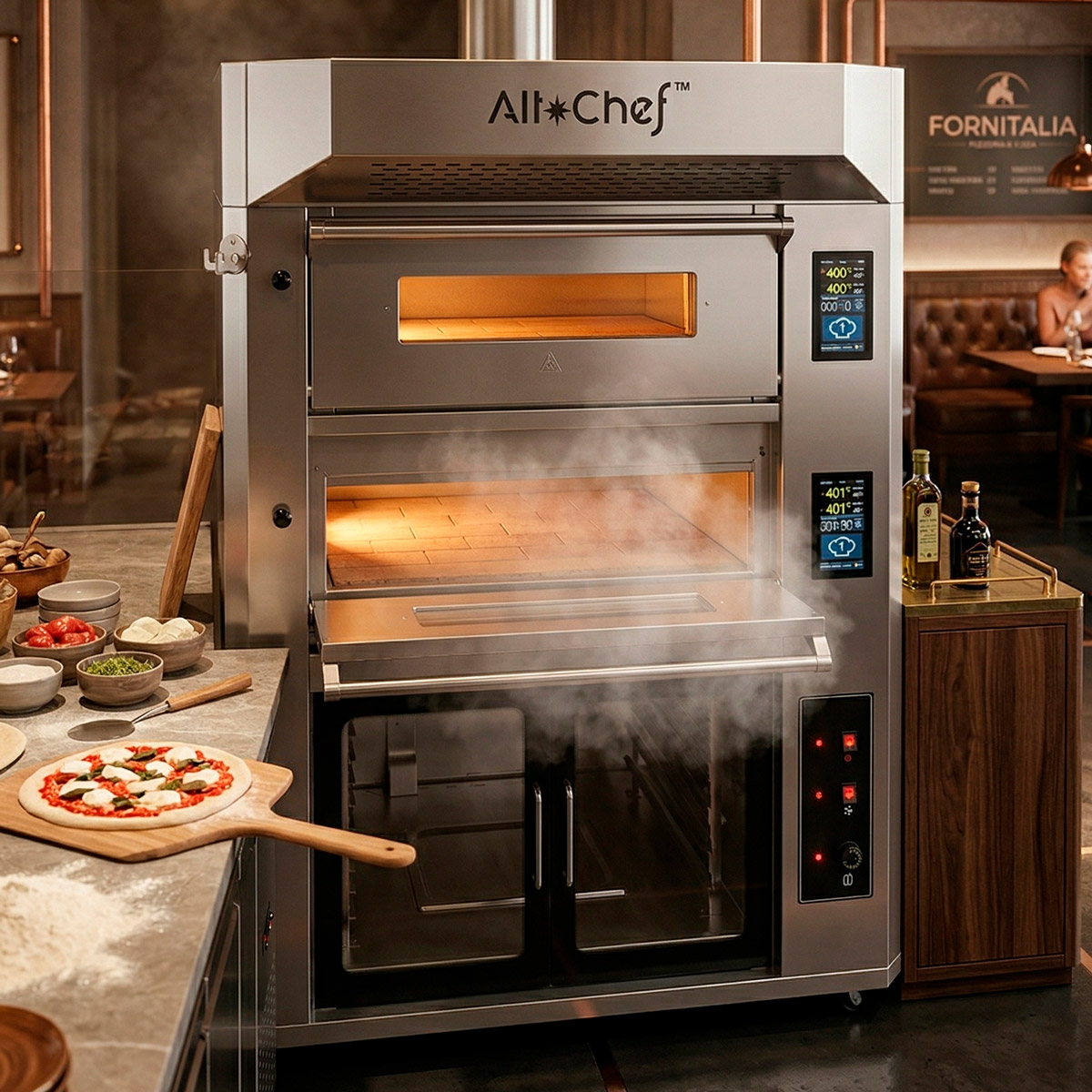 1. ¿Puedo hornear pan y pizza al mismo tiempo? ¡Claro que sí! Esa es su mayor ventaja. El horno cuenta con dos cámaras independientes. Puedes configurar la temperatura de la cámara superior para una pizza a alta temperatura y, simultáneamente, usar la cámara inferior con vapor para hornear pan o cualquier producto de repostería.